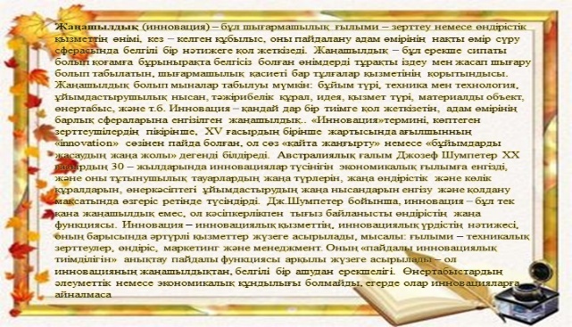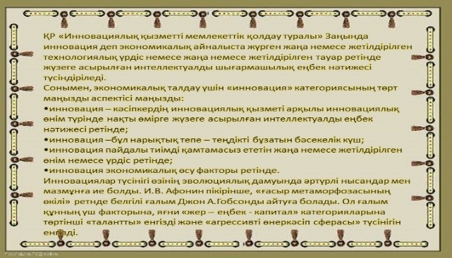 инновация – кәсіпкердің инновациялық қызметі арқылы инновациялық