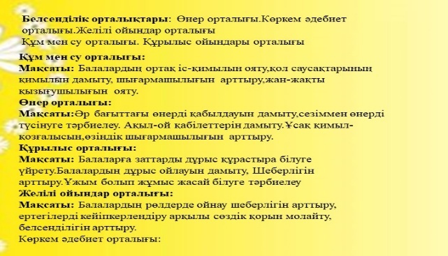 қалыптасуына,дамуына денсаулығының нығаюына жағдай жасалынып
