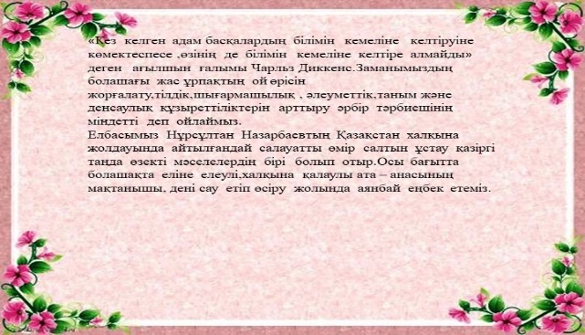 білім,саналы тәрбие беру.Елбасымыздың өз халқына жолдауында атап