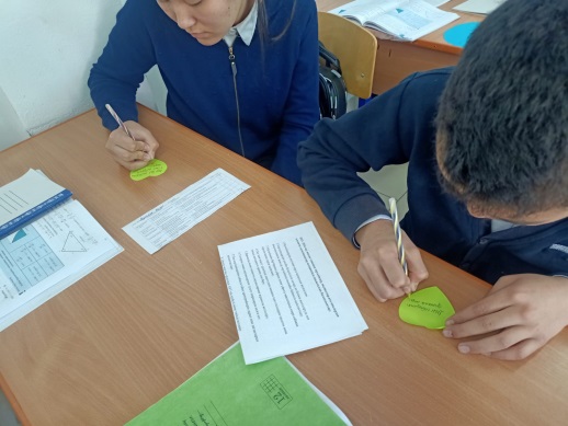 әдісін қолданды. Бұл тапсырманы орындау барысында оқушыларға өткен