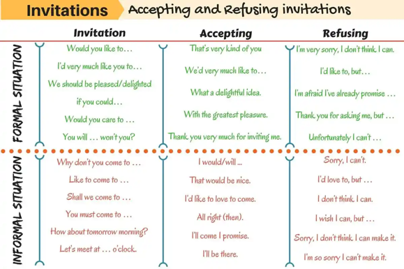 All learners will be able to: -understand specific details through the keywords, style, intonation and repetition; -use new words in speech. Most learners will be able to: -differentiate between Inviting-accepting/refushing; - create short conversations in routine context on topics of interest/discussed issue. Some learners will be able to: - the value based on the integrated educational program is to educate students for justice and responsibility |