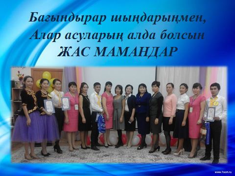 Жүргізуші: Бүгінгі сайымыздың басты кейіпкерлері жас мамандармен олардың тәлімгерлерін тағыда бір қол соғып қошеметтей отырып,орындарына жайғасып отыруларын сұраймыз.