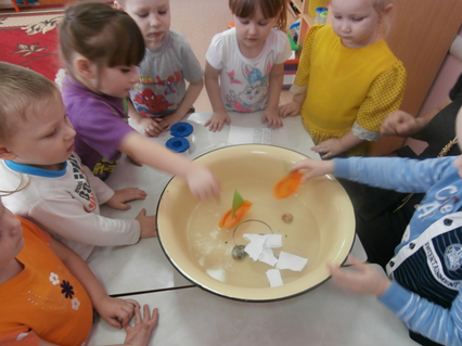 3топ «Шығармашылық»топ Тәжірибие эксперимент орындайды. Д\ойын «Батады батпайды»