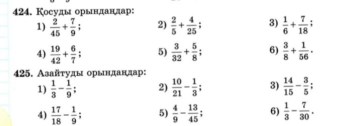 5.1.2.17 бөлімдері бірдей бөлшектерді қосу және азайтуды орындау; 5.1.2.18 бөлімдері әртүрлі бөлшектерді қосу және азайтуды орындау; |