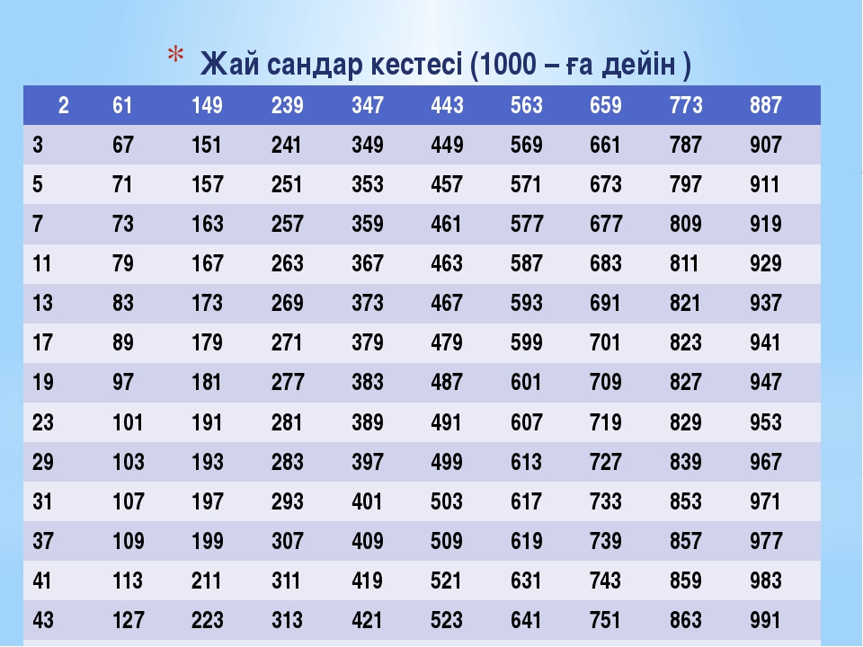 Жай сандар мен құрама сандарды анықтай білу және оны есеп шығаруда қолдануға үйрету |