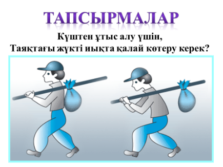 Барлық оқушылар істей алады: - Механиканың алтын ережесін тұжырымдайды Көптеген оқушылар істей алады: - Күш моменті ұғымын түсінеді Кейбір оқушылар істей алады: - есеп шығару кезінде тепе-теңдік шартын қолданады; |