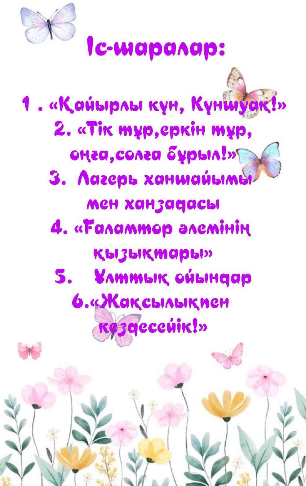 «Күншуақ» жазғы демалыс лагерінің жұмыс жоспары