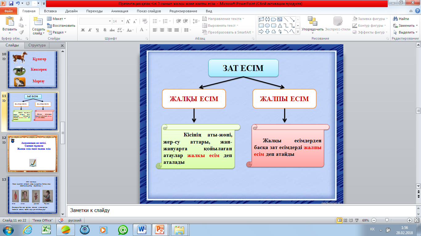 2.2.4.1 Мұғалімнің көмегімен мәтіннің тақырыбы мен негізгі ойды анықтау 2.4.2.4 Зат есімнің жалпы және жалқы түрлерін ажырату,жалқы есімнің жазылу емлесін сақтау |