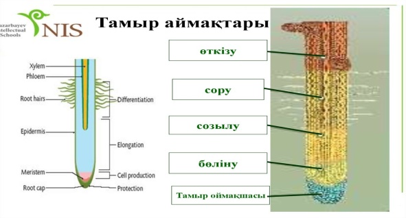 Тамыр суреті №3 сурет- сору аймағы, №1 сурет бөліну, №2 сурет өсу, №4 өткізу аймағы