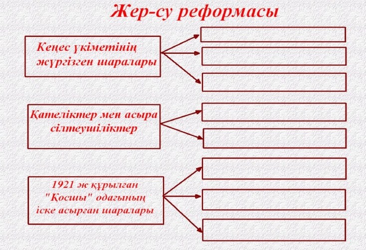 8.3.1.7 ХХ ғасырдың 20-30 жылдардағы әміршіл-әкімшіл жүйе саясатының зардаптарын талдау; 8.4.1.1 деректер мен дәйектерді салыстыру арқылы жаңа экономикалық саясаттың нәтижесінде орын алған өзгерістерді талдау |
