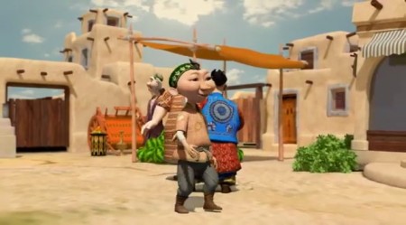 Мыстан кемпір әндетіп, жолға шығады. Жолшыбай тамаша көңілді би билеп жүрген Арыстан мен Тасбақаға жолығады.