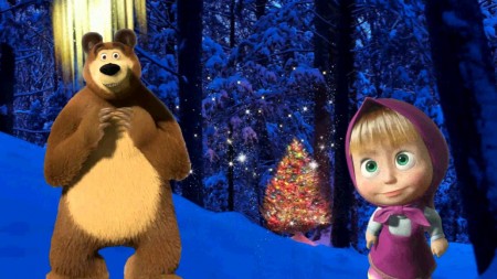 Мыстан кемпір өз жеңісіне қуанып келе жатып, Аю мен тентек Машаға кездеседі.