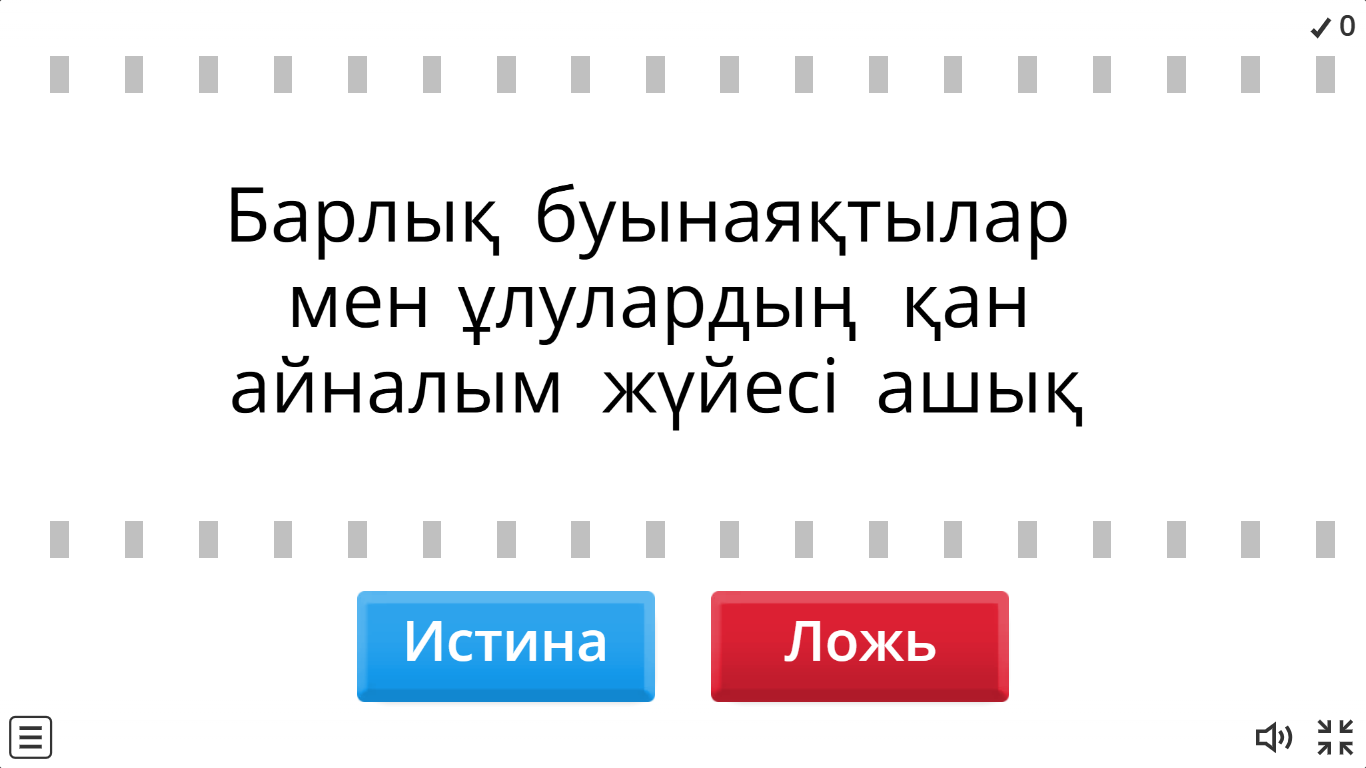 Тапсырма 1. Жеке жұмыс. Оқушылар «Шындық немесе жалған» әдісімен қойылған сұрақтарға жауап береді.