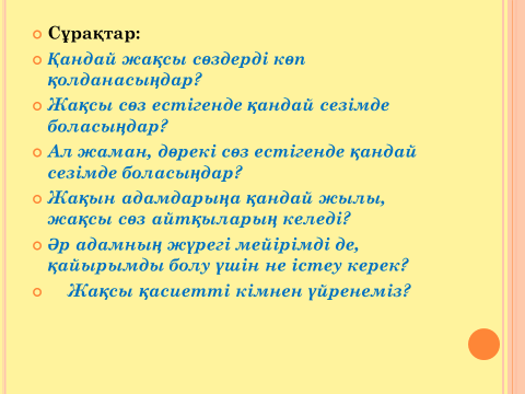 Жақсылық пен жамандық туралы ойларын дамыта түсу  |