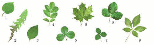 1.Жәй және күрделі жапырақтарға сәйкес нөмірді атайды