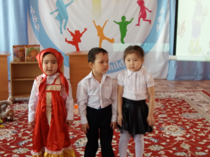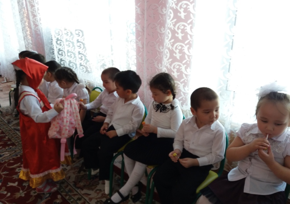 Маша:Рахмет балалар сендерге менің сендерге акелген өзім жақсы көретін кәмпитім бар.