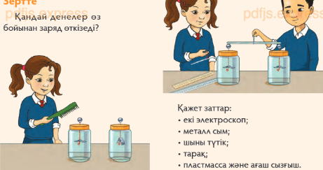 Зарядтардың оң немесе теріс болатынын білетін болады; Түрлі материалдардың электрөткізгіштігін қалай зеттеуді білетін болады |