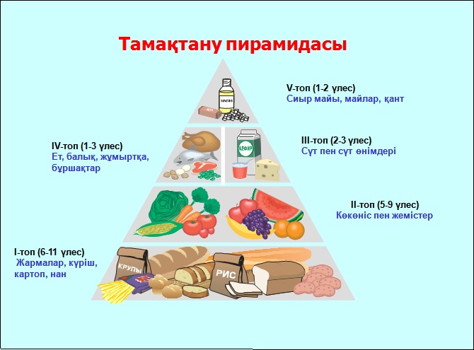 Пәнге қатысты сөздік қор мен терминдер: Пайдалы тағамдар, тамақтану пирамидасы, |
