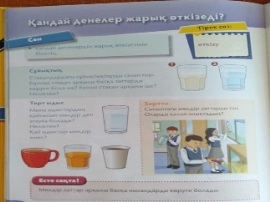 «Ойлан» «Жұптас» әдісі Мөлдір ме, Мөдір емес пе? Су және сүт. ЕБҚ балаға тапсырма Мұғалімнің көмегін көп қажет ететн оқушыларға Жарықты өткізеді- жарықты өткізбейді. Оқушылар жарықты өткізетін заттардың атауларын сары қарандашпен бояп қояды. Мөлдір емес заттардың атауларын қызыл қарандашпен бояйды. Дескриптор: 1.Жарық өткізеді- жарық өткізбейтін заттарды біледі. 2.Жарық өткізеді- жарық өткізбейтін заттарды бояйды. «Бес қадам» әдісі -Бүгінгі сабақта не үйрендің? -Не ұнады? -Не түсініксіз болды? -Саған кім көмектесті?