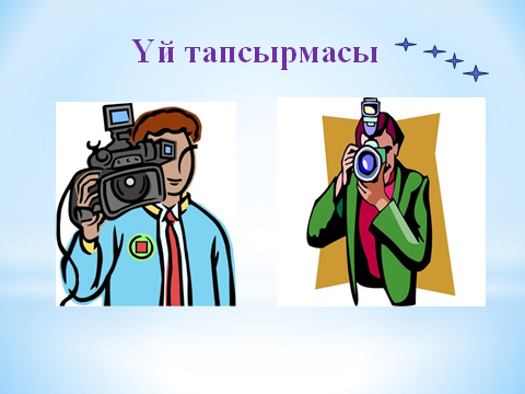 Алдын ала берілген тапсырма бойынша мектептегі ережелер жөнінде шағын видеоролик түсіріп келу. Постер жасату. Жол ережесіне, өрке байланысты қауіпсіздік ережелерінің видиоларын көрсету. Машиналар Суреттер арқылы сәйкестендіріп табады. Қара жәшік, дәптер, қалам |