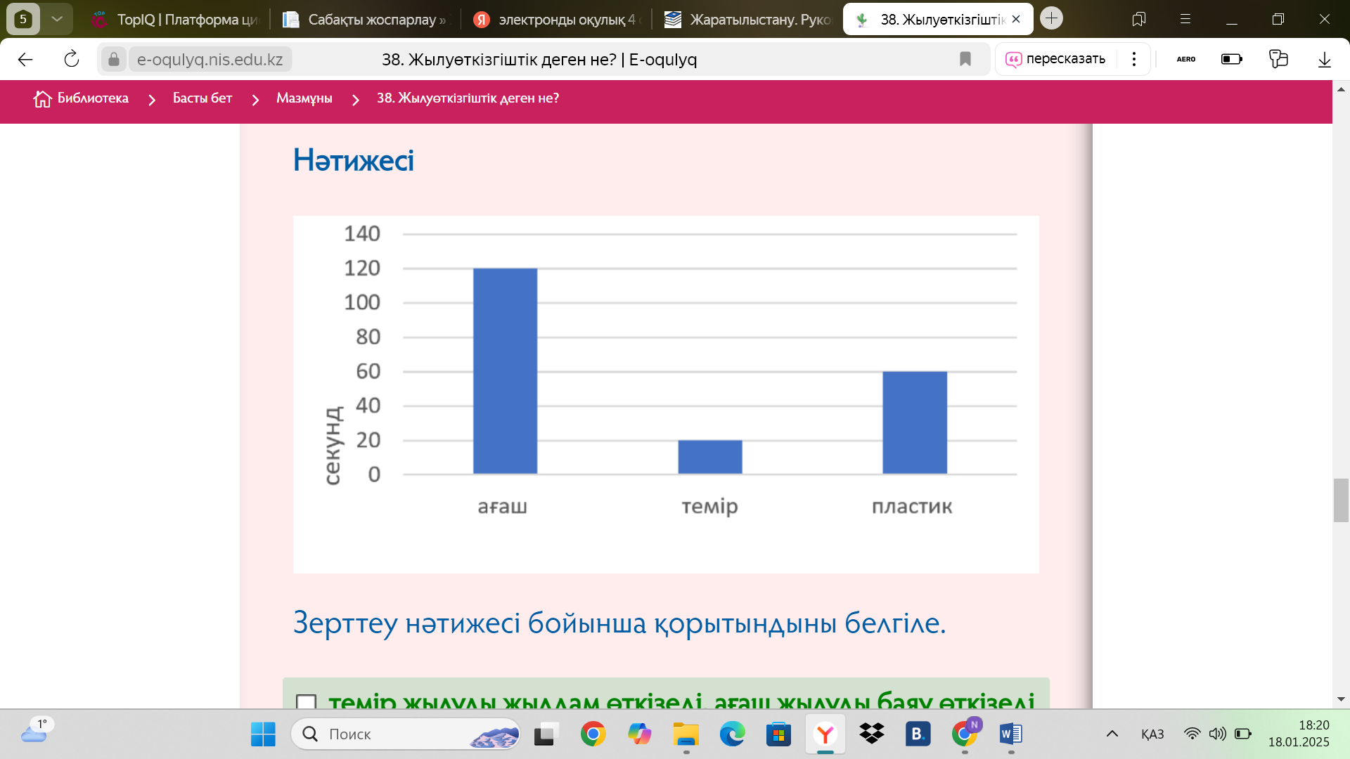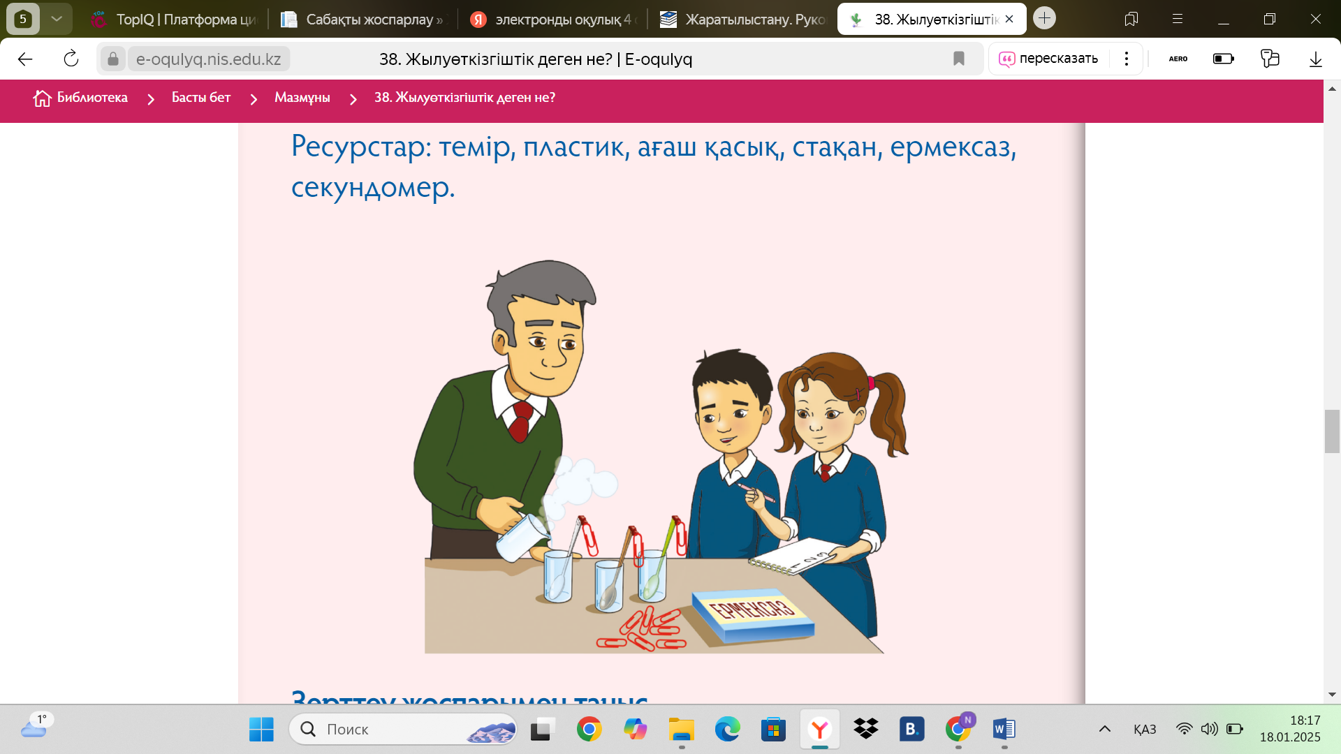 Жаратылыстану 38 сабақ Жылу өткізгіштік деген не? 4 сынып