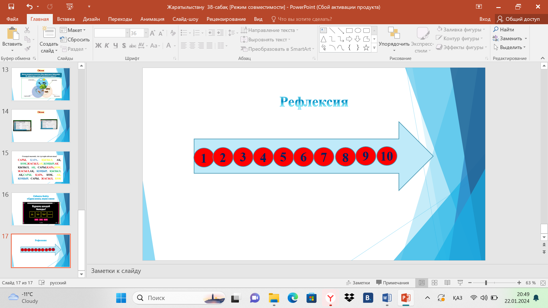 Сабақтың барысы |