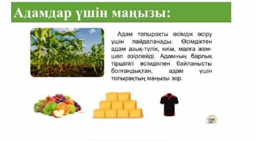 17- сабақ. Топырақ не үшін қажет? «Пазл құру» әдісі арқылы балалар өткен тақырыпқа байланысты сұрақтарға жауап береді.