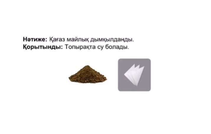 3-тәжірибе: Топырақта су болатынын анықтау Қажет заттар: қағаз,майлық, топырақ. Зерттеу жоспары: