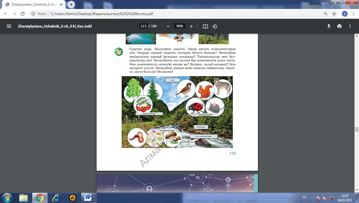 1. Суретке қарайды. Экожүйені анықтайды. Оның негізгі
