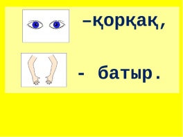 Психологиялық ахуалға берілген психогиялық жаттығуларды орындау арқылы жаңа сабаққа назар аударады. Үлпілдік ақша бұлттаға,жауар бұлттай түнерген аспанға,мейірімді жылы күнге,ай мен жұлдыздарға,қарлығашқа,бозторғайға,шымшыққа,бүркітке т.б.айналады. Сабақтың ережесін еске түсіріп қайталайды. Оқушылар сұраққа жауап береді. Жоқ, себебі шөп, жәндіктер жоқ әрі суық. Қор жинайды. Аралар,борсықтар,сұр тышқандар т.б. |