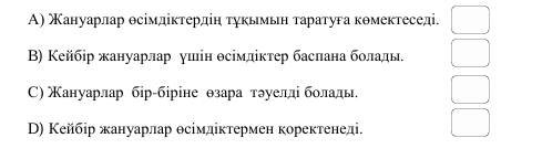 Өсімдіктер мен жануарлардың арасында қандай байланыс бар? Белгіле (v)