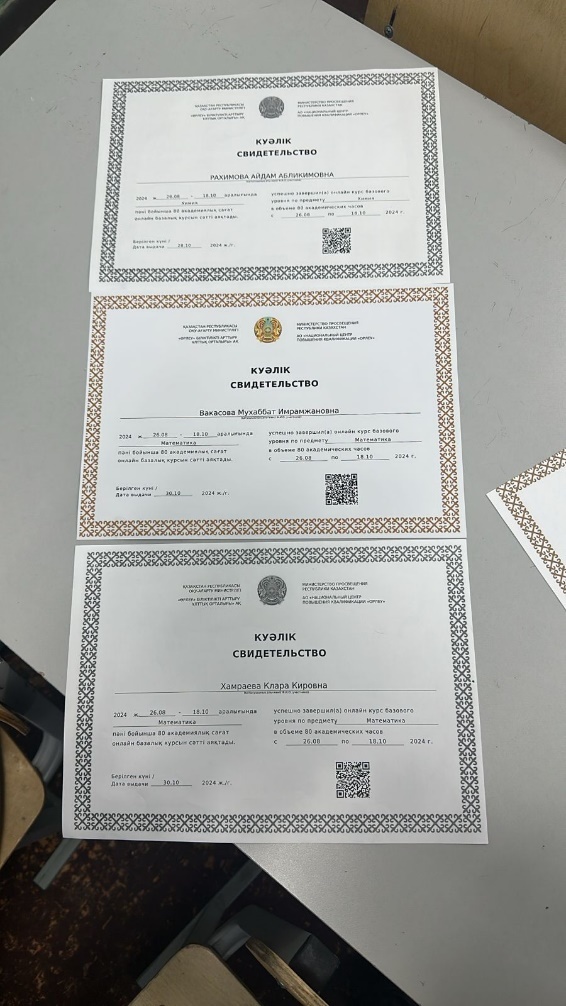 Оқу барысында мұғалімдер жаңа білім беру әдістеріне қол жеткізе білді, сол әдістерді практикада қолдана отырып оқушылардың білімге деген қызығушылығын артырып, білім сапасын көтеруге ат салысты.