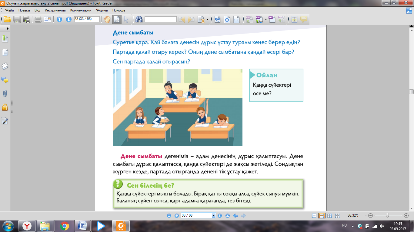 2.2.3.1 - адамның тірек-қимыл жүйесінің қызметін анықтау 2.2.3.2 - дұрыс дене сымбатын сақтаудың маңыздылығын түсіндіру; |
