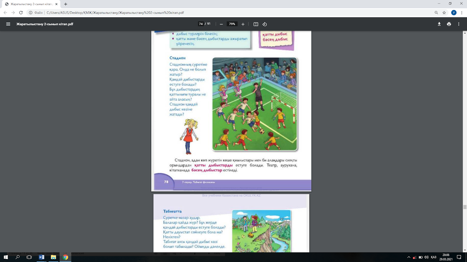 1-тапсырма 1.Стадионның суретіне қара. Онда не болып жатыр? Қандай дыбыстарды естуге болады? Бұл дыбыстардың қаттылығы туралы не айта аласың? Стадион қандай дыбыс көзіне жатады?