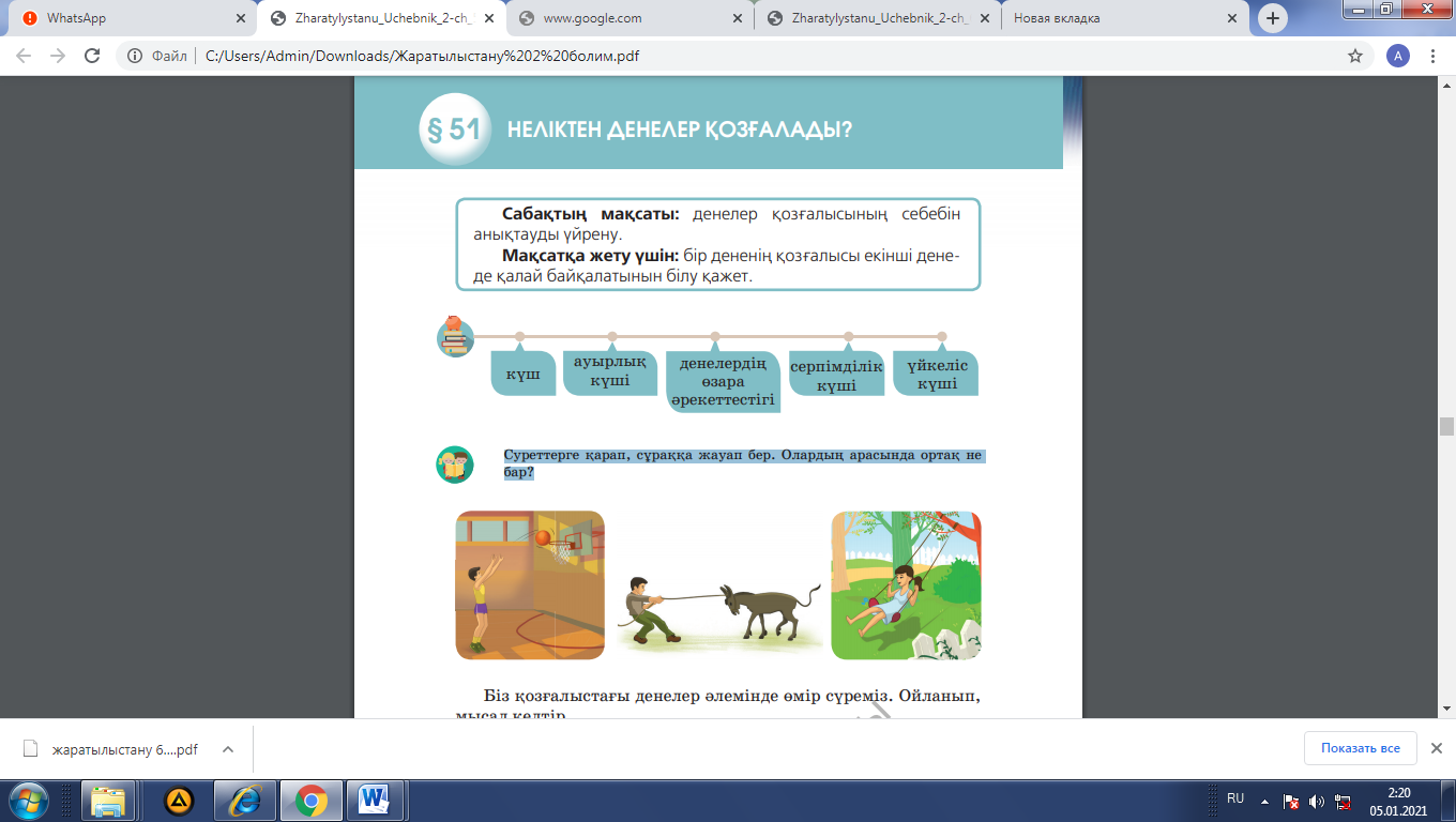 5.5.2.3 денелер қозғалысының себебін анықтау |