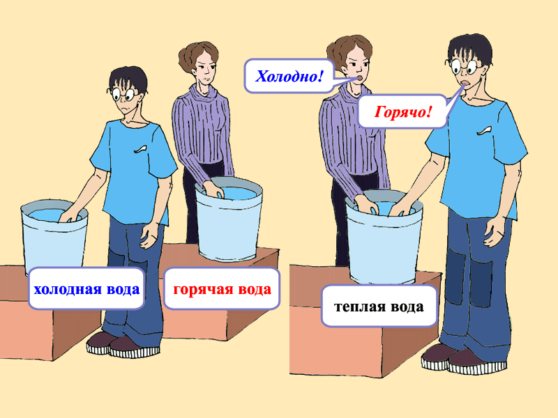 Ой-қозғау 1.Жылулық ұлғаю деген не? 2.Дене көлемінің ұлғаюын сипатта. 3.Температураны өлшеудің ережелері қандай? «Демонстрациялық жұмыс» оқушылардан жасаған демонстрациясына ой қозғап, тақырыпты ашамын. Столдың үстінде тұрған ыдыста, біріншісінде ыстық екіншісінде салқын су беріледі.Оқушы ыыдысқа саусағын (бірінші салқын кейін ыстық суға) салып,не сезінгенін әңгімелейді.Не сезіндіңіз ?