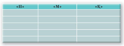 Рефлексия: «Плюс-минус-қызық» рефлексиялық экран «П» – «плюс» бағанына – жағымды эмоция беретін немесе пайдалы болған, сабақта ұнағанның барлығын – ақпарат немесе жұмыс түрін жаз. «М» – «минус» бағанына – сабақта не ұнамады, не қызықсыз болды, түсіне алмаған, өмірлік жағдайларда пайдасыз болып шыққан ақпаратты жаз. «Қ» – «қызық» бағанына – сабақта білген қызықты фактілерді, осы мәселе бойынша тағы не білгің келер еді, мұғалімге қоятын сұрағыңды жаз.