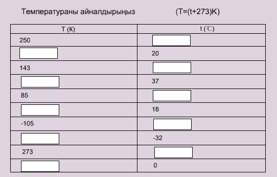 Демонтрация негізінде температура өзгерісін сипаттайды Температура ұғымына анықтама береді Дәптерге тірек сөздерді жазады Цельсий шкаласы бойынша алынған температура мен Кельвин шкаласы бойынша есеп шығарады |