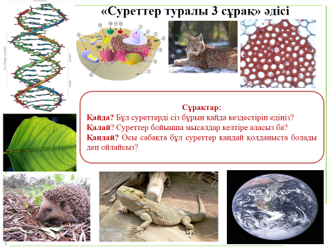 Оқушылар не көріп тұрғандарын табуға тырысады. Сол арқылы сабақтың тақырыбы анықталады |