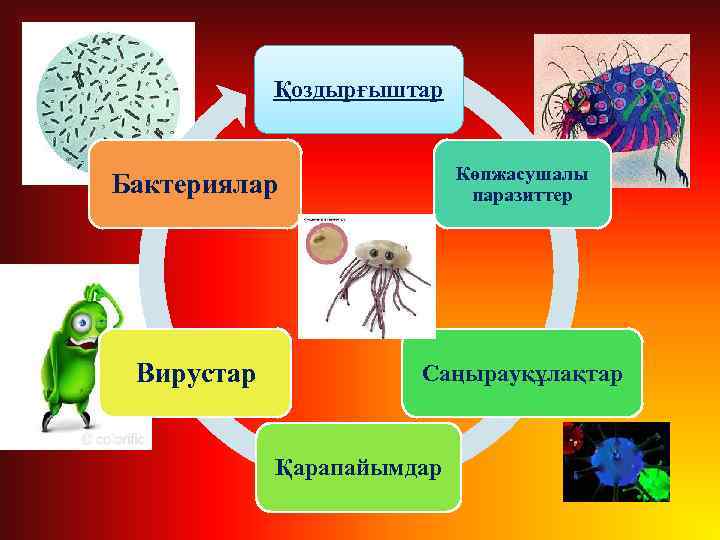 Микроорганизмдер – өте кішкентай тіршілік иелері, оларды тек микроскоп арқылы ғана көруге болады. Олар біздің қоршаған ортада everywhere кездеседі: топырақта, суда, ауада, тіпті адамның және жануарлардың денесінде де бар. Кейбір микроорганизмдер пайдалы болып, адамдар мен жануарларға көмек көрсетсе, мысалы, сүт өнімдерін дайындауға қатысады, ал кейбіреулері зиянды, олар тамақты шірітіп немесе адамға ауру тудыруы мүмкін.