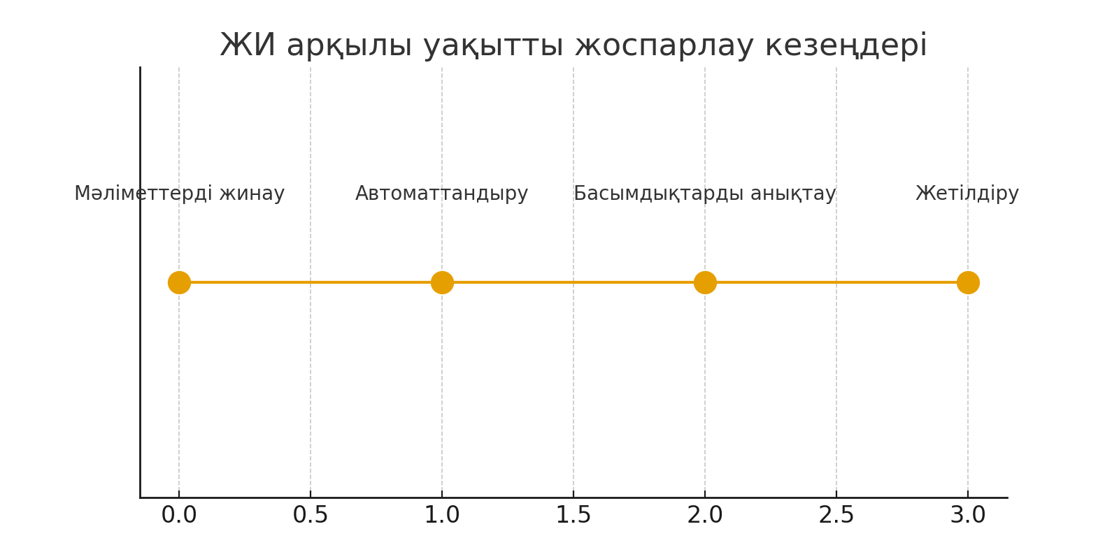 Жасанды интеллект уақытты тиімді басқаруға арналған күшті құрал болып табылады. Төменде ЖИ-дің көмегімен уақытты басқарудың негізгі кезеңдерін көрсететін қарапайым график ұсынылған.
