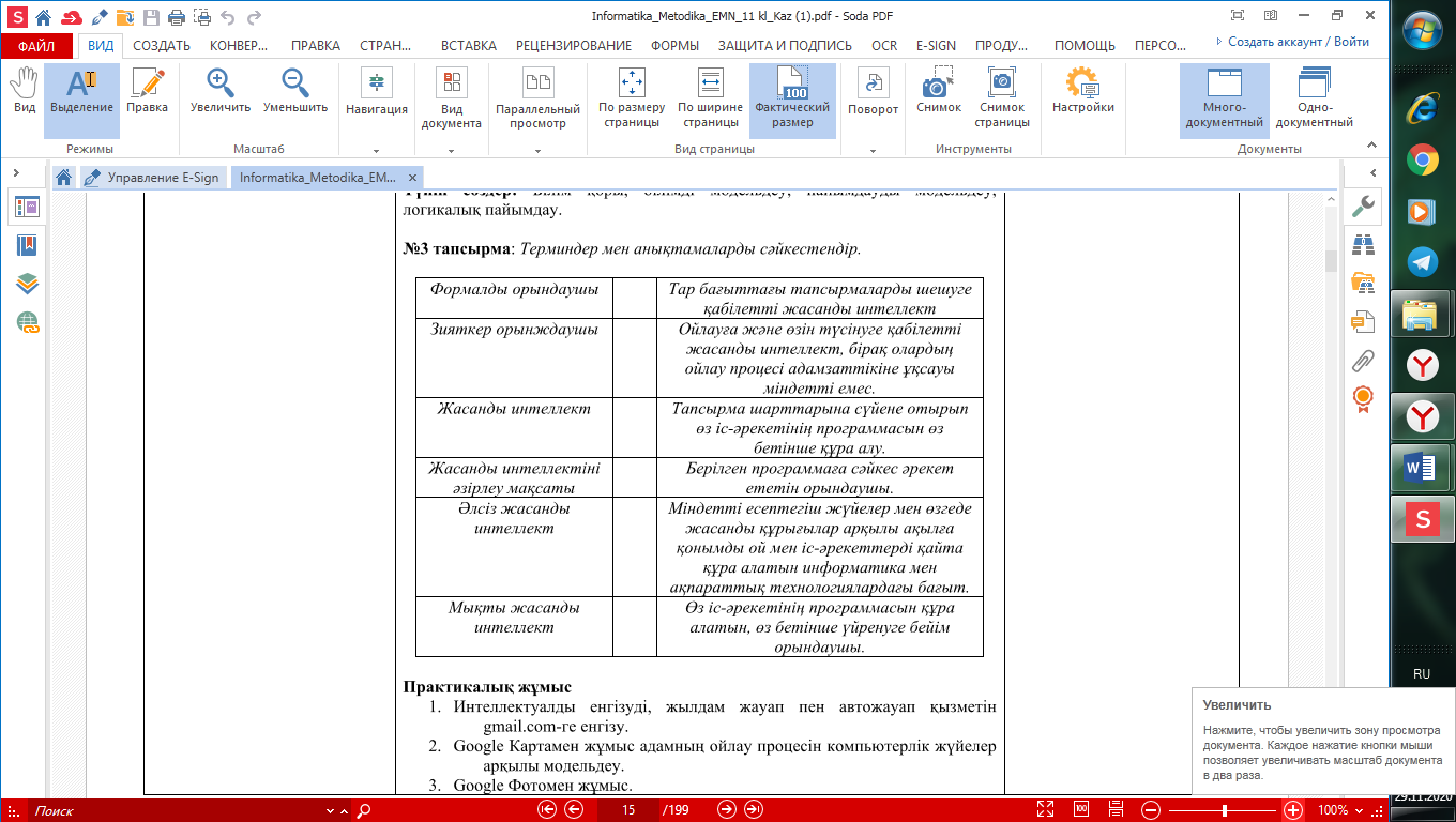 Жасанды интеллект ұғымын түсіндіреді; |