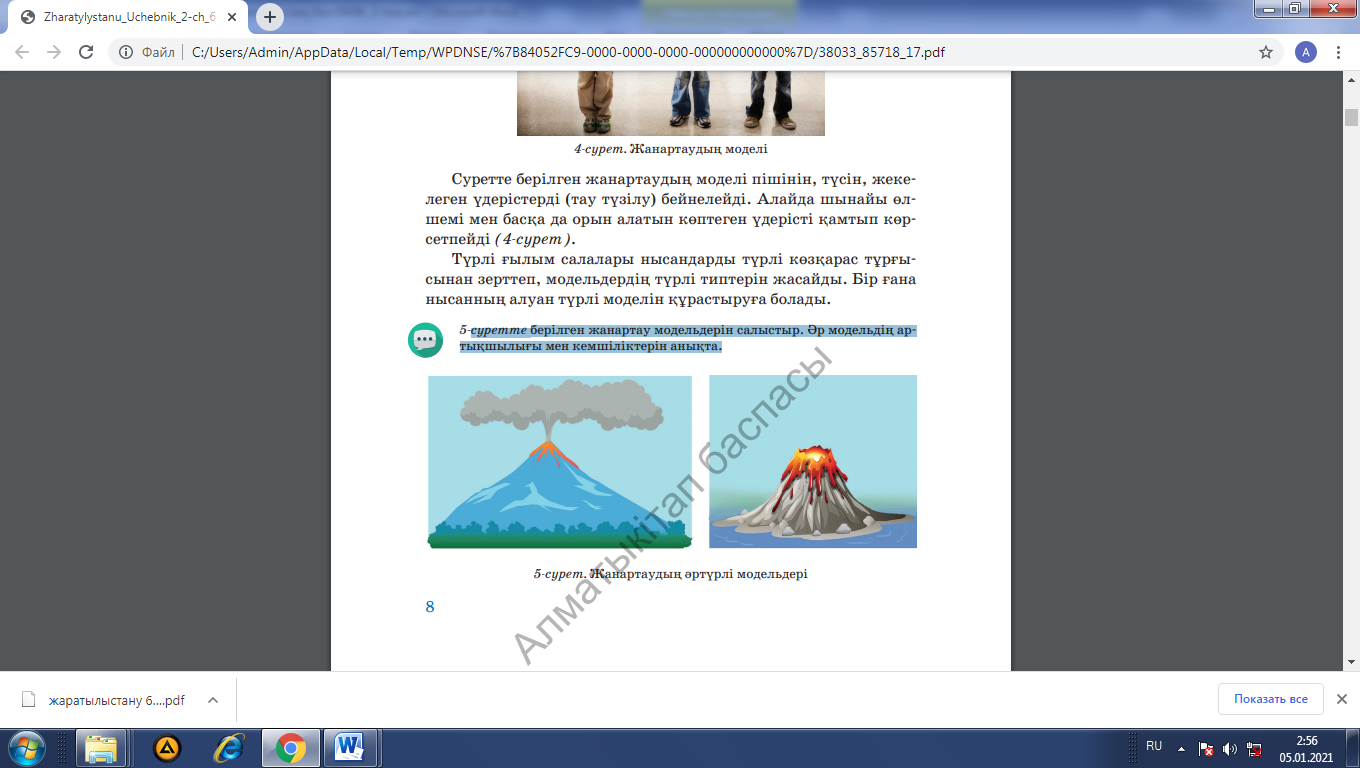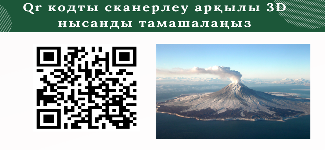 Object viewer бағдарламасы арқылы 6 сынып оқушыларын Өлі табиғаттағы үдерістер тақырыбында оқу мақсатым 6.4.1.1 өлі табиғаттағы болып жатқан үдерістерді модельдеу (таудың жасалу, мүжілу үдерістері, табиғатта заттардың айналымы). Оқушылар ұялы телефондары мен кубик пайдаланып Жанартау атқылау модельін көзбен көргендей әсер алады.