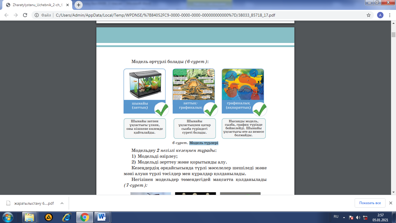 2. Тапсырма 1.Модель түрлерін түсіндіреді.