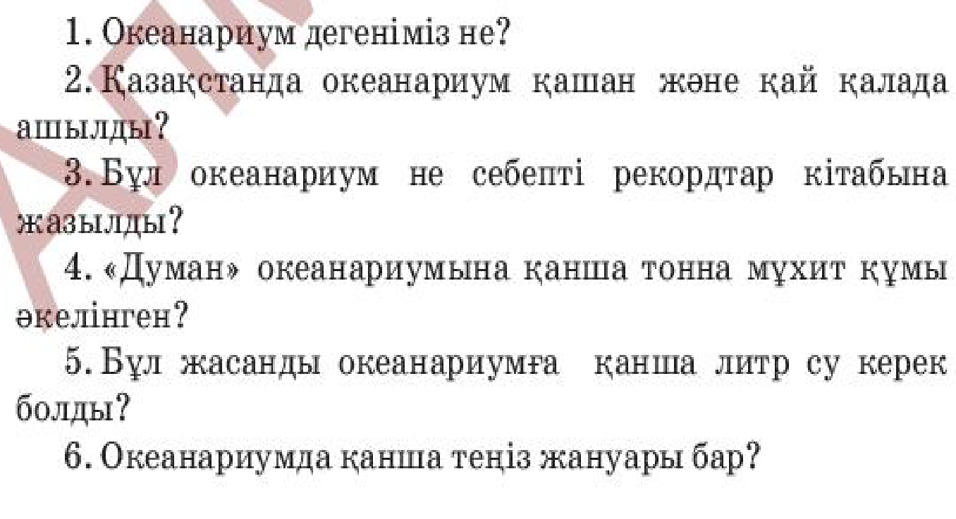Жасанды мұхит туралы мәтін оқиды; сандарды дұрыс оқуға және жазуға, айтуға үйренеді. |