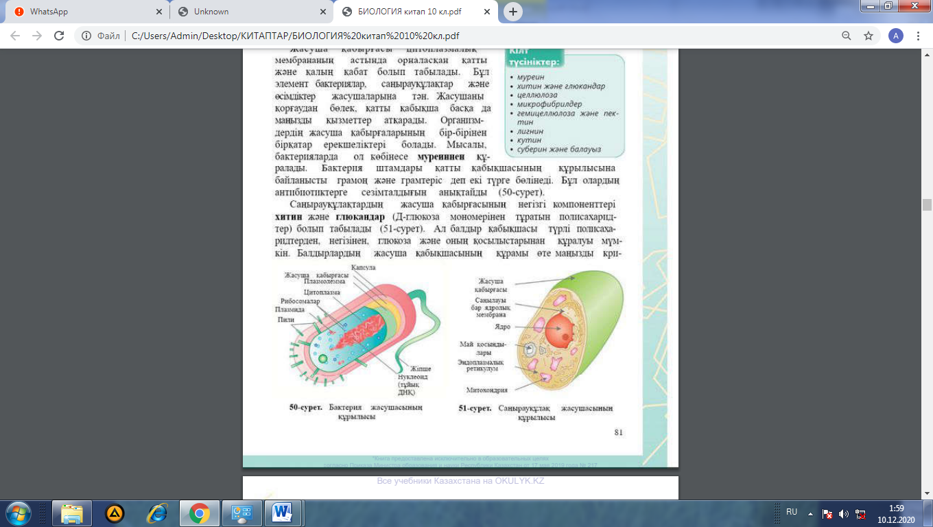 3-тапсырма: 3.1.Бактерия, саңырауқұлақ және өсімдік жасуша қабырғасы құрылысы сызбанұсқаларын пайдалана отырып, айырмашылығын табады.