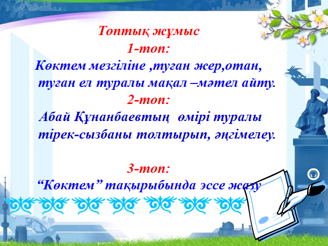 2 - топ: Өлеңдегі көктемгі тіршілікті суреттейді.