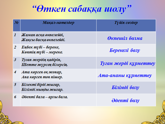 Өткен сабаққа шолу жасалды.