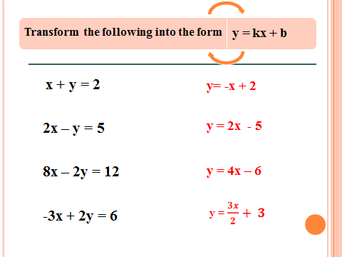 2x – y = -7 ⇨ -y = -2x – 7 ⇨ y = 2x + 7