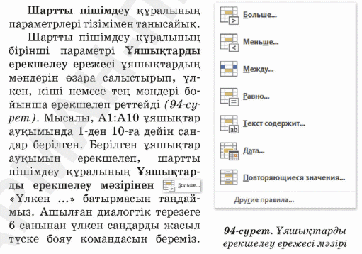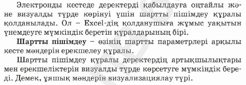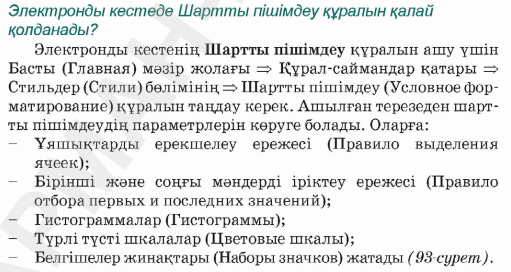 Электрондық кестеде шартты пішімдеуді қолданады |